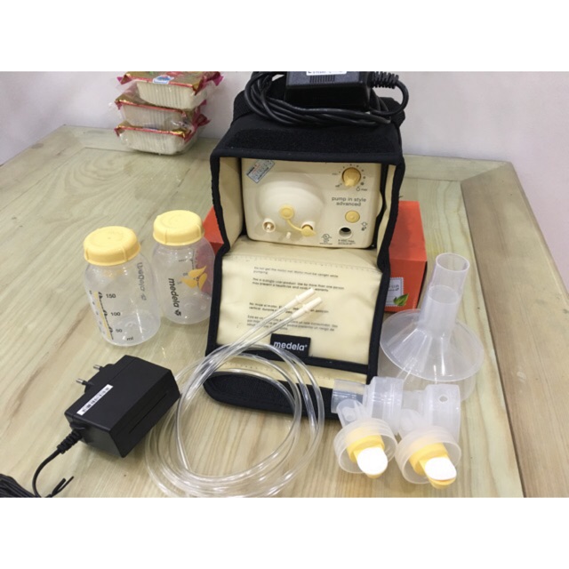 Thanh lý máy hút sữa đôi Medela, full phụ kiện, lực hút mạnh, hàng chính hãng, máy nhỏ gọn thích hợp cho tới công sở, VP