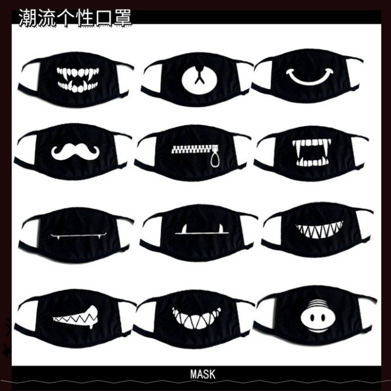 Freeship- (mới về) Khẩu trang chống bụi vải cotton màu đen in hình nhiều hình tùy chọn EXO,BTS,hacker,ngôi sao,trái tim mua tại đây